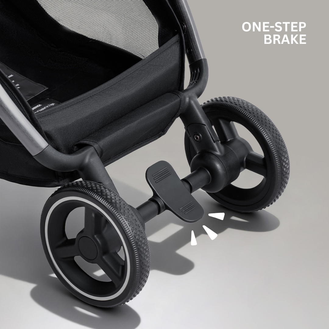 The Ayla features large, robust wheels for smooth manoeuvrability on all surfaces. From cobbled streets to park paths, your journeys are effortless, stable, and comfortable for both parent and child.