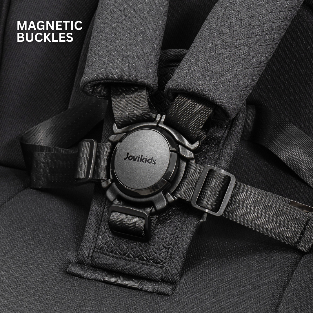 Our magnetic buckle system makes securing your little one faster and easier than ever. Paired with the 360° swivel bumper bar, it’s a smooth, stress-free experience every time.